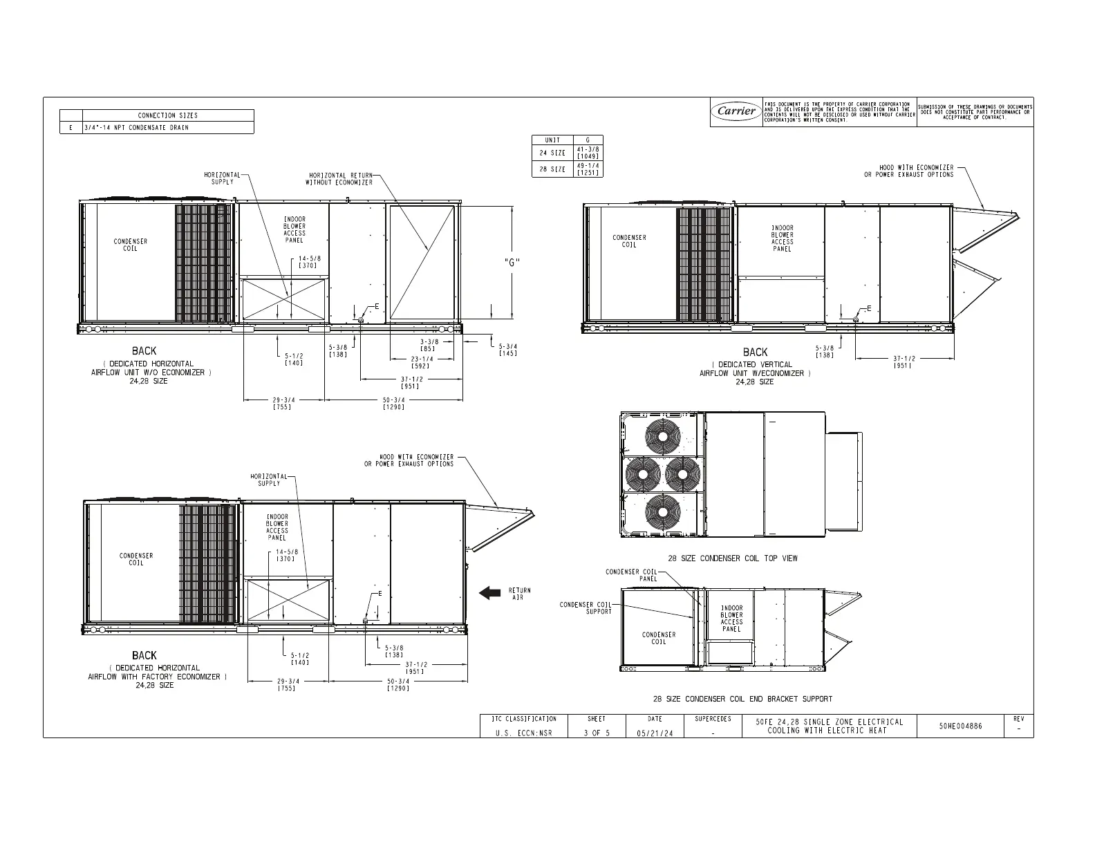 Fig. 9 — 50FE-*24-28 Back View and Condensate Drain Location