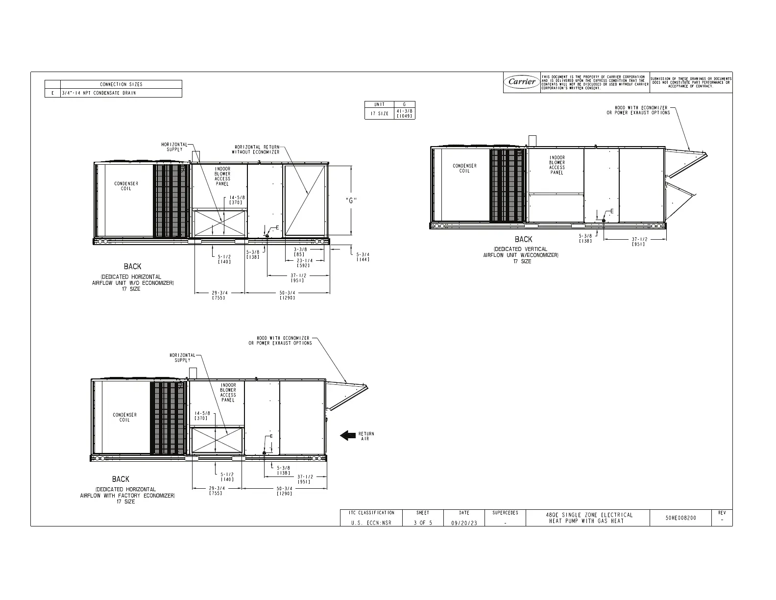 Fig. 4 — 48QE**17 Back View and Condensate Drain Location