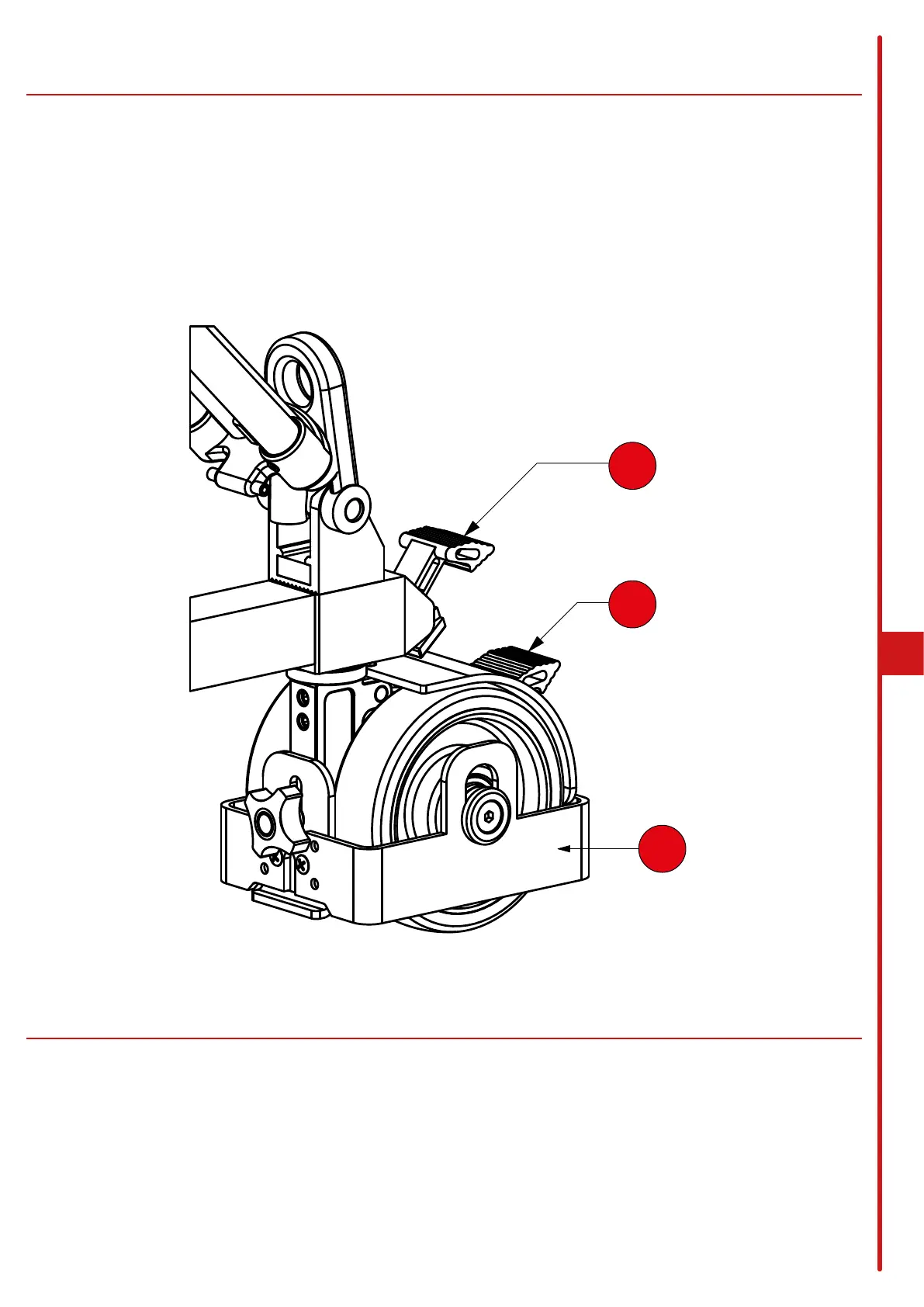 To block all wheels and hence Pedestal movement, lower levers (25).