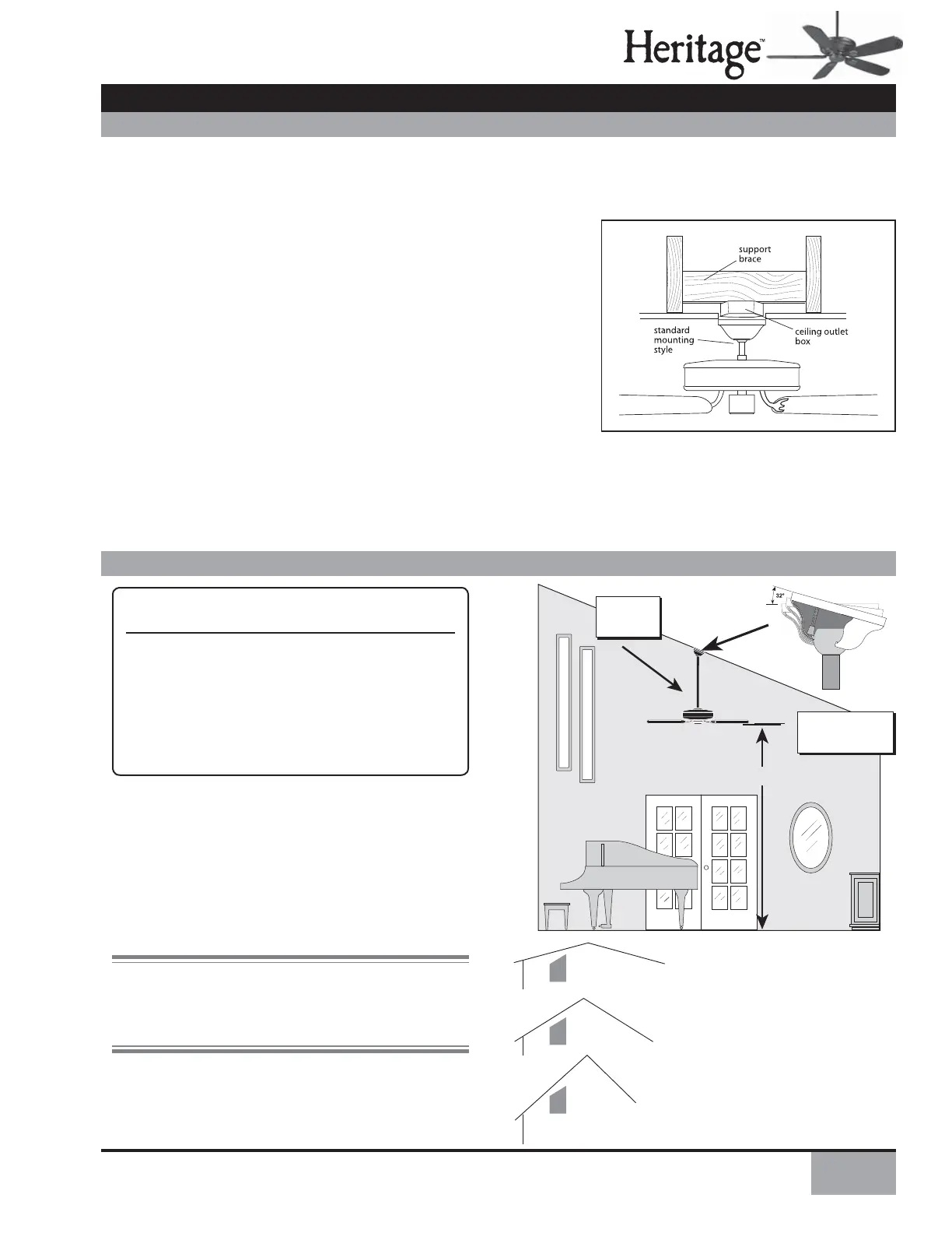 • In bedrooms, fans work best when mounted above the foot of the bed.