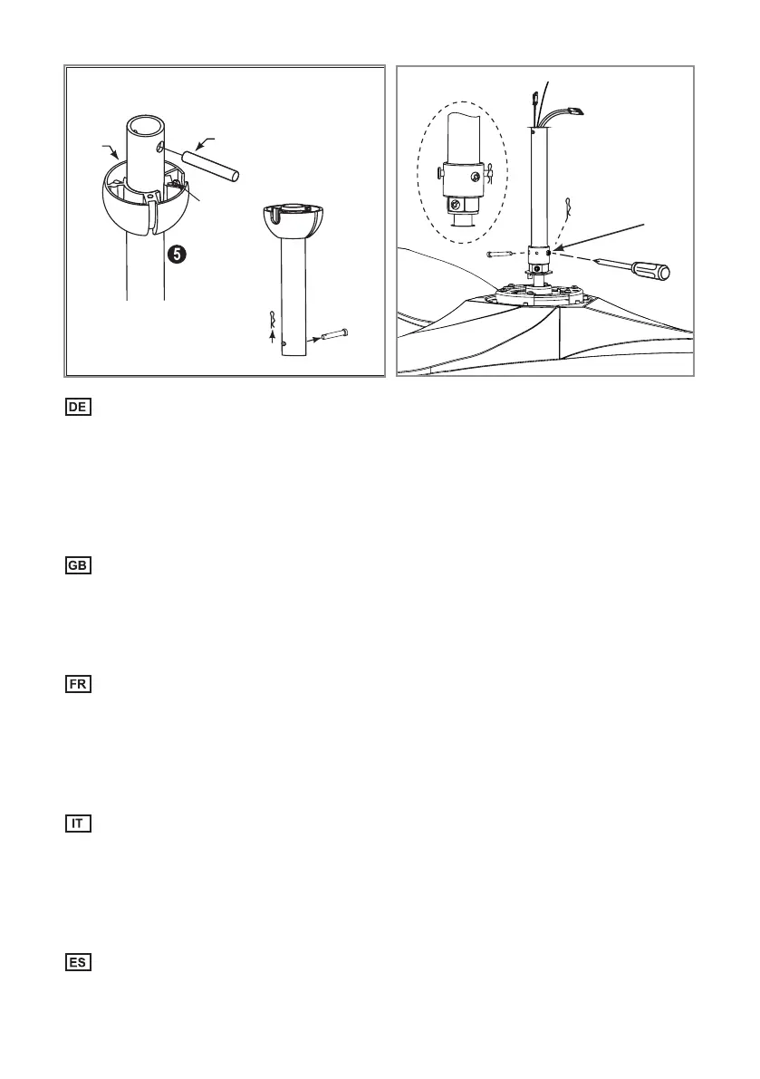 the bracket and through the downrod. Secure the locking pin with the split E. Tighten