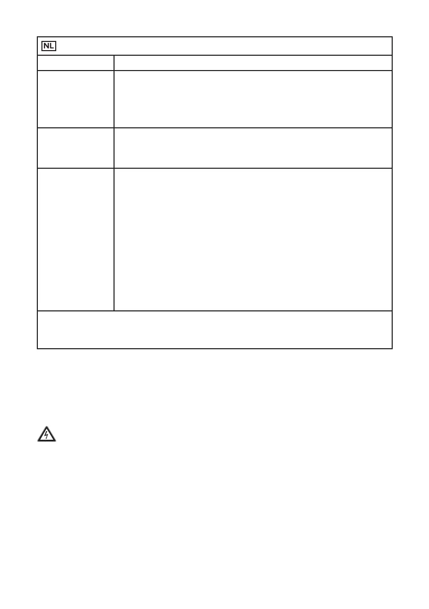 WAARSCHUWING: Gevaar voor elektrische schokken! Schakel de elektriciteit uit