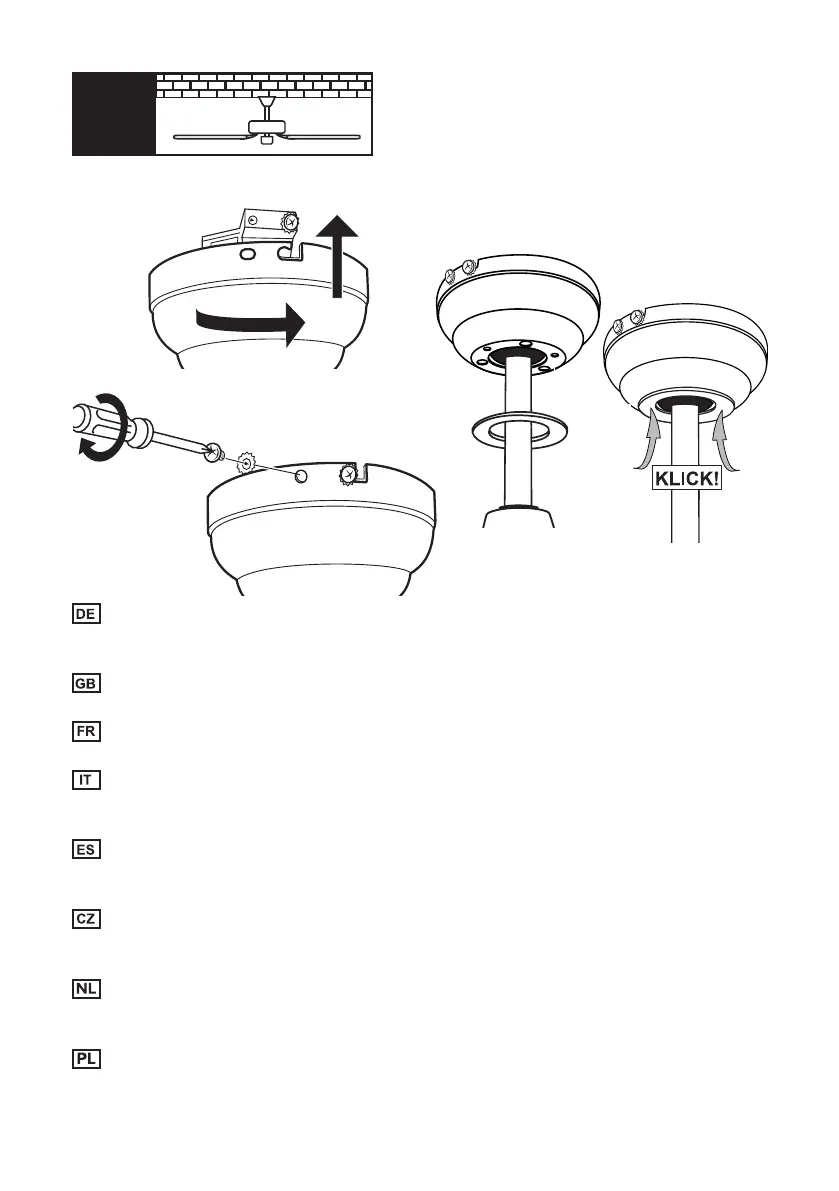 Fasten the 4 canopy screws. Press the cover ring upwards until it clicks into place.