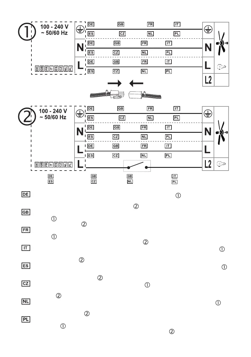 Schließen Sie die Kabel mit der Netzspannung nach Schema an die