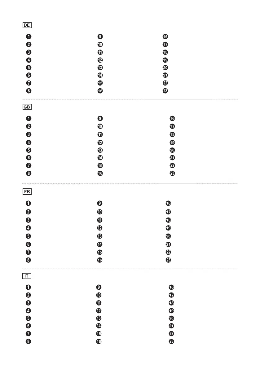 Cache des vis de fixation Pales (5×) Sûreté des transports (3×)