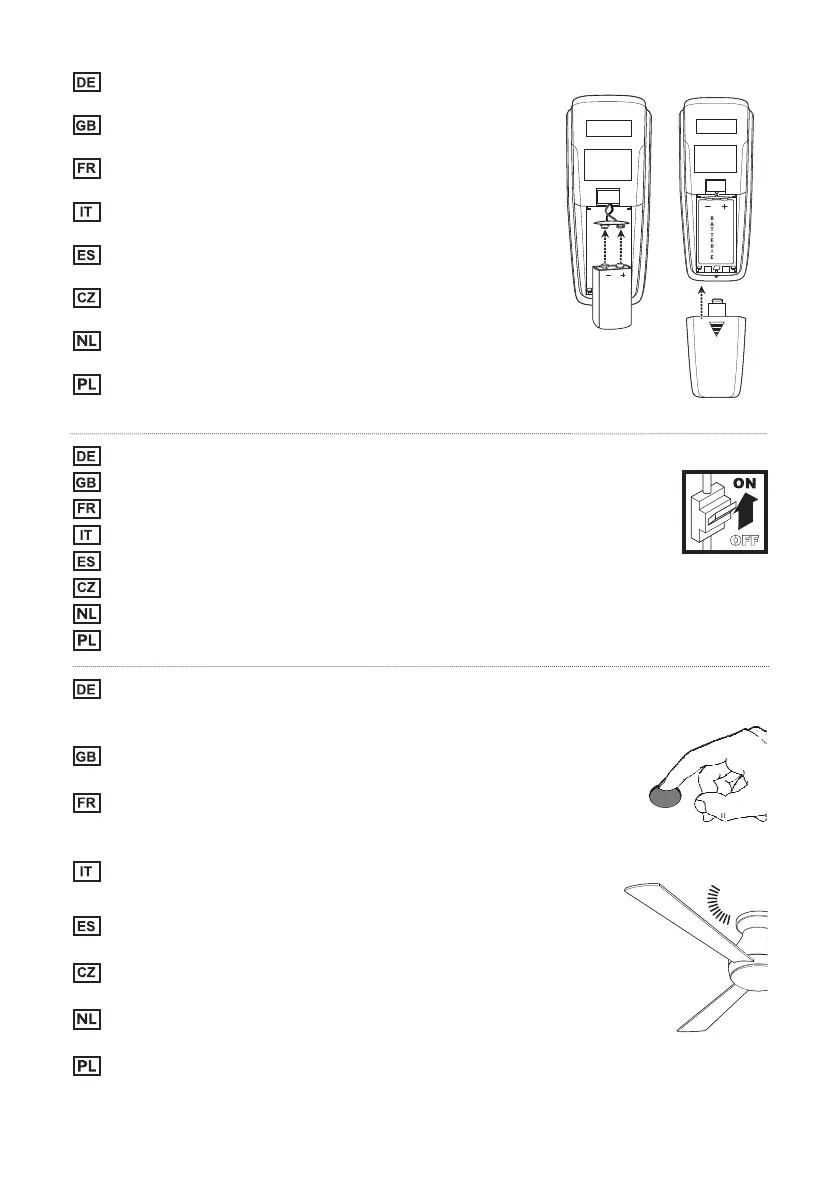 Setzen Sie 1 Batterie Typ 6F22 (9V) in den Handsender der