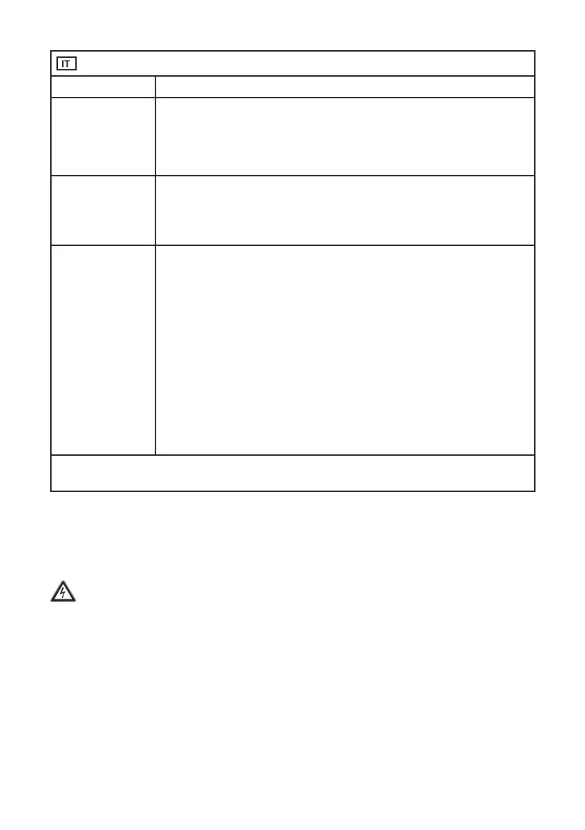 AVVERTENZA: Pericolo di scossa elettrica! Spegnere l‘alimentazione alla