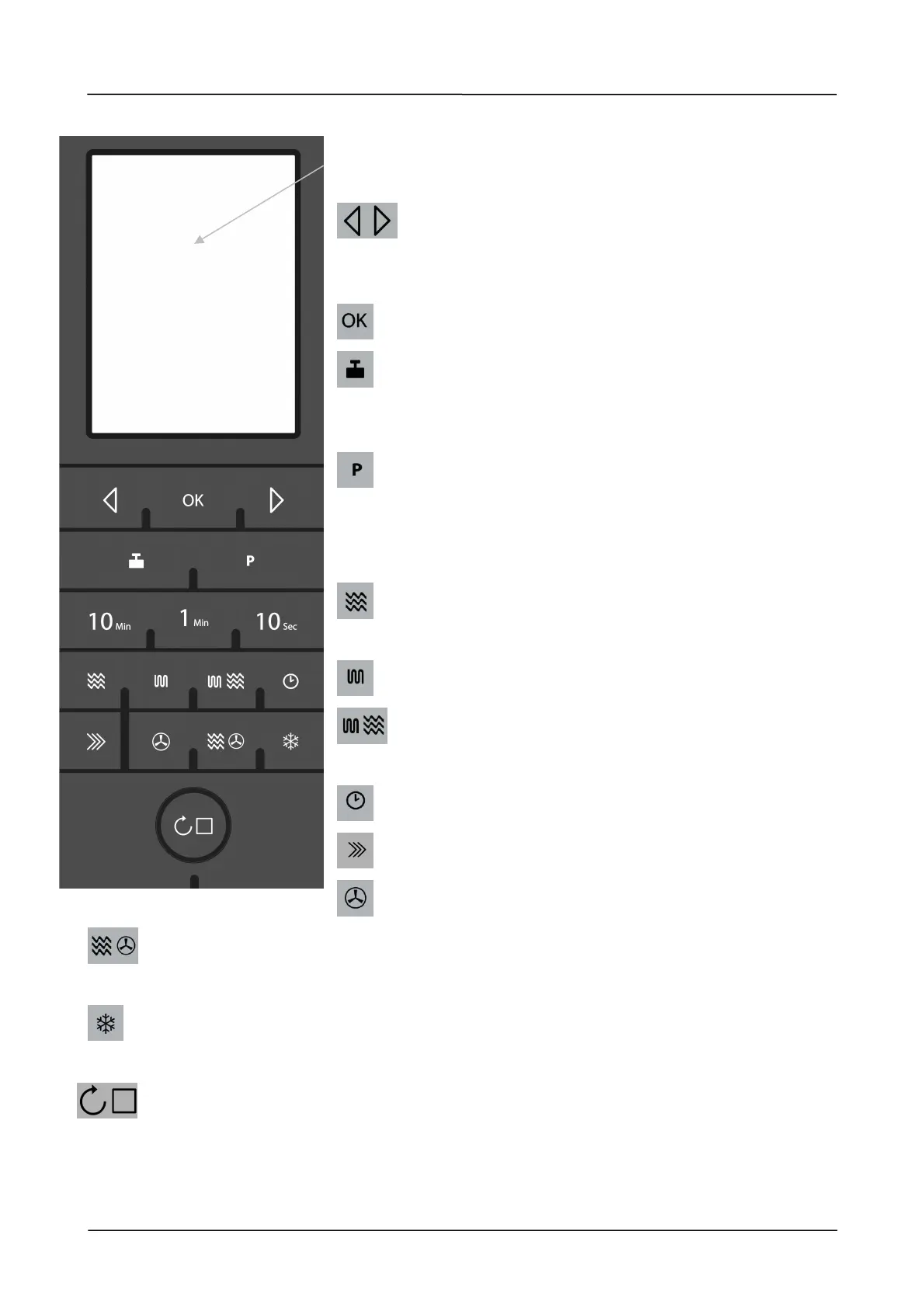 Anzeigenfeld: Garzeit, Leistung, Funktionsanzeige und