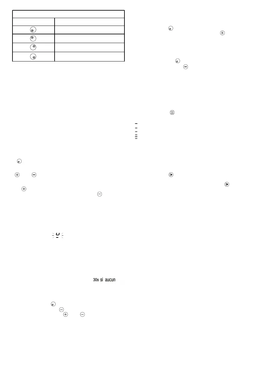 1. Lorsque la table de cuisson est allumée et fonctionne, appuyez sur