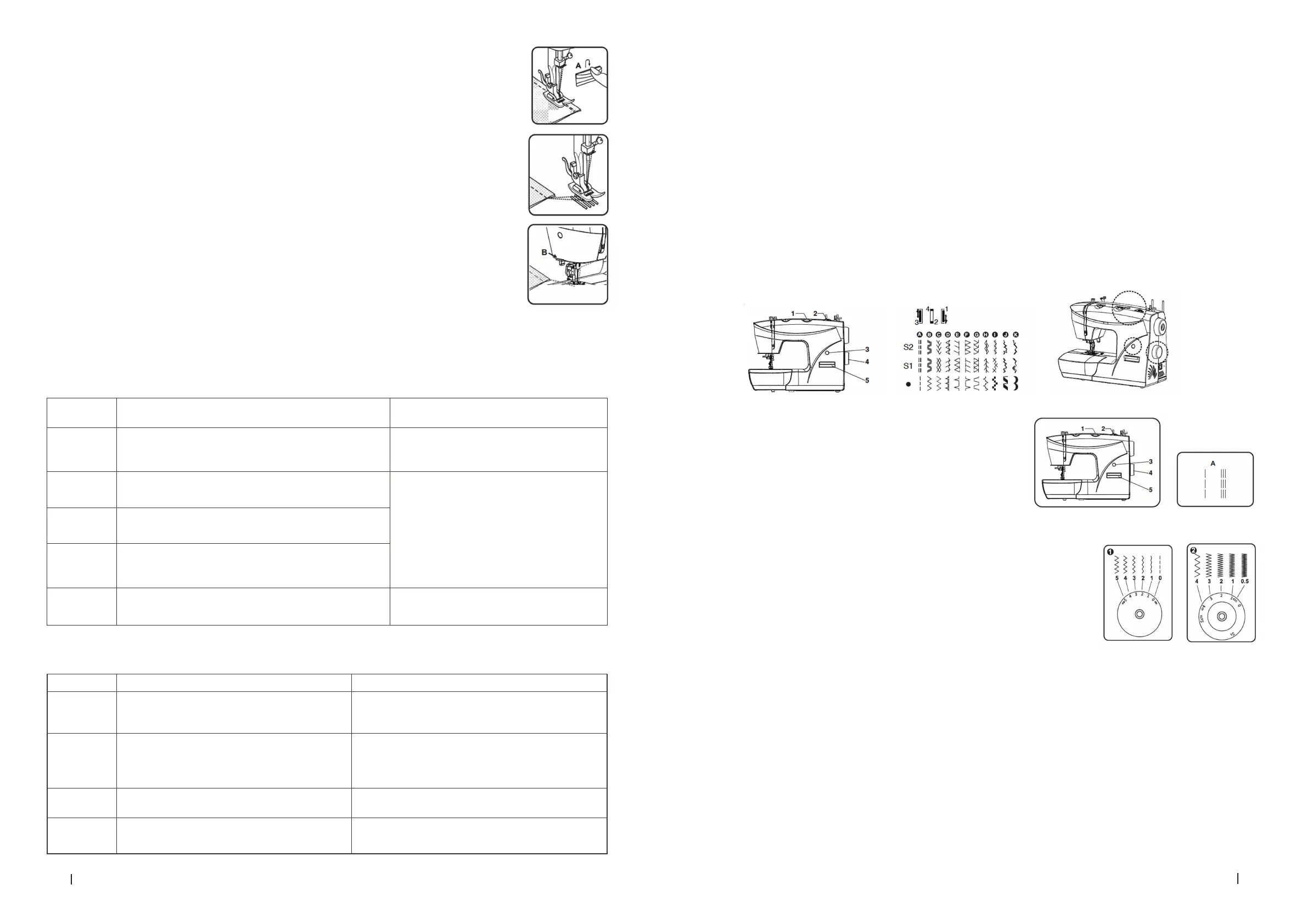- Pour réaliser l’un des motifs de point de la deuxième rangée, tournez la molette de longueur de point (2) en position S1. Sélectionnez ensuite