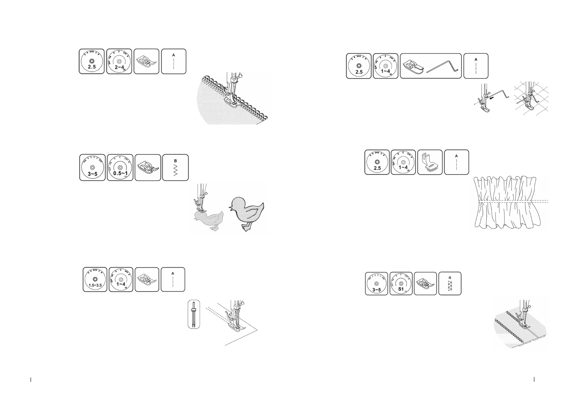 - Portare la rotella del punto in posizione G. Ruotare la rotella della lunghezza del punto in posizione S1.
