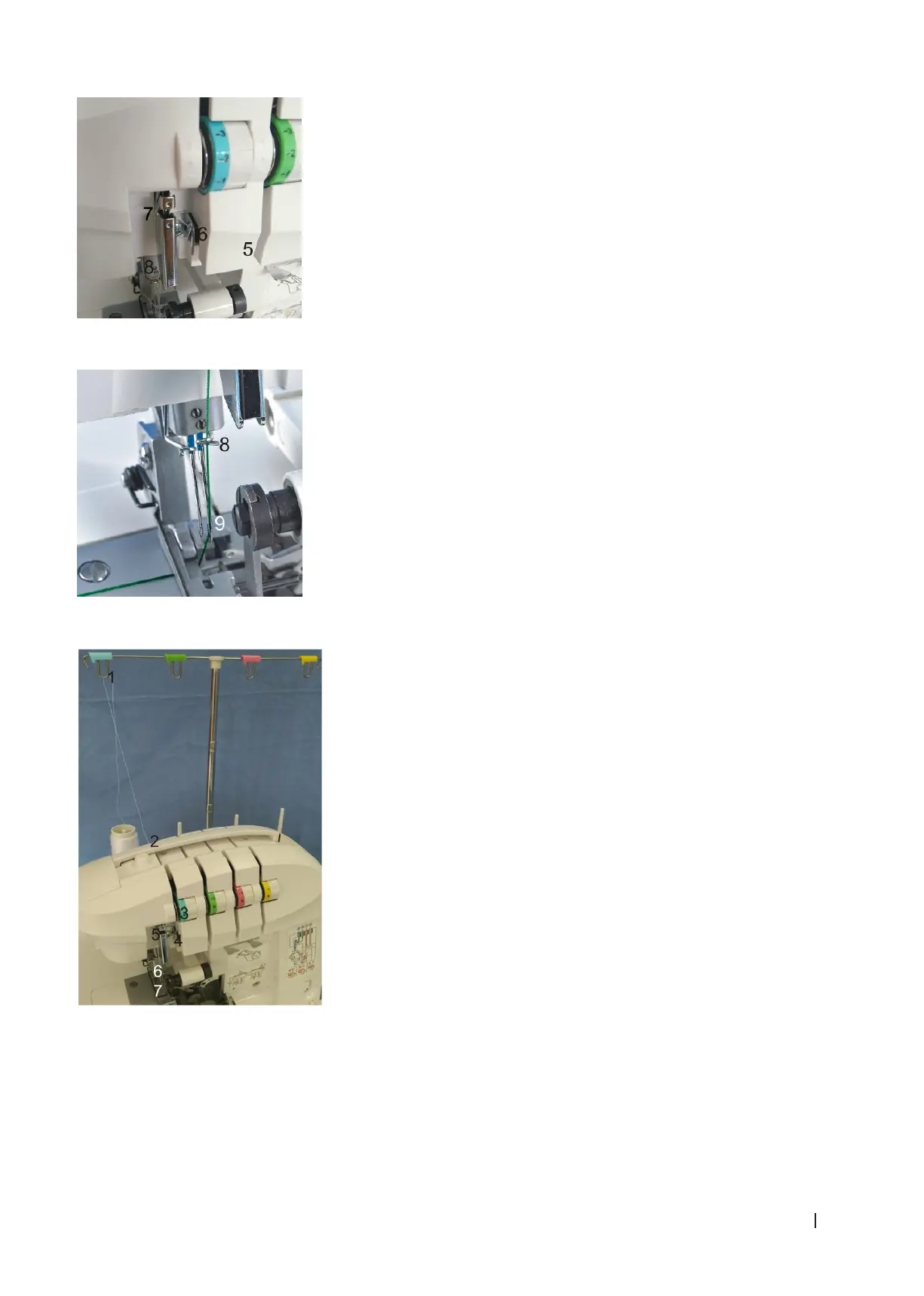 Der Faden muss durch den oberen Schlitz der Führung (7) laufen.