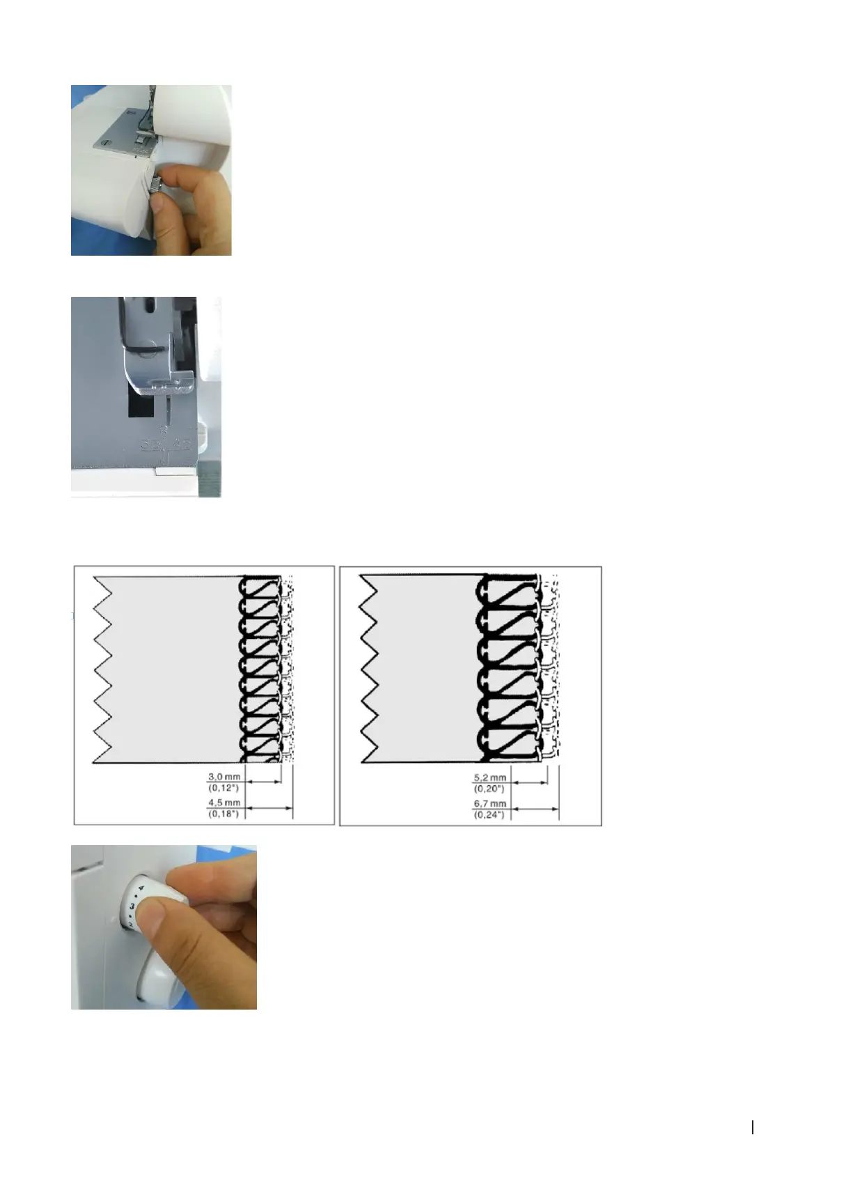 Für die meisten Näharbeiten sollte der Regler auf 3 mm eingestellt werden. Bei schmalen Gewirken