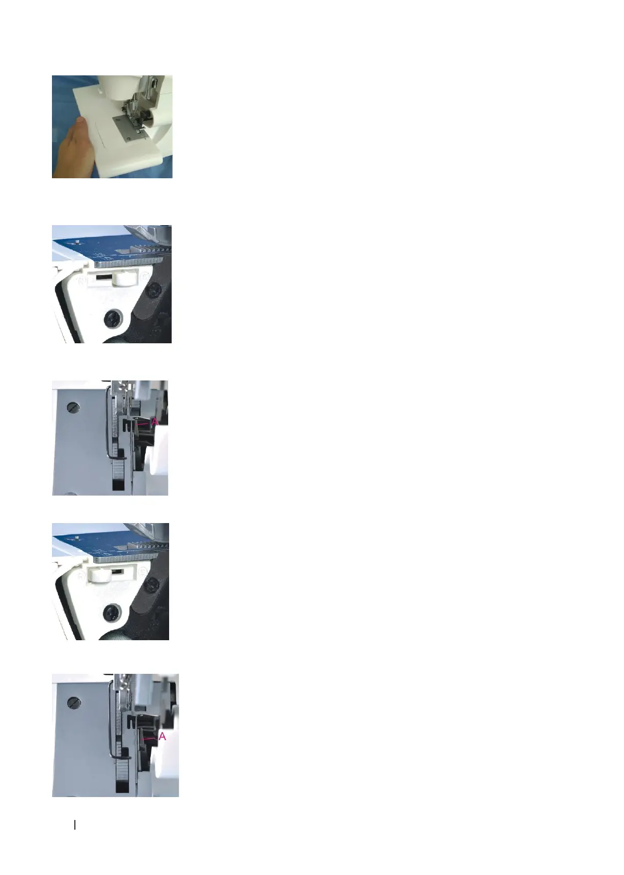 - Teil A wird nach hinten geschoben. Alle Rollsäume können mit dieser Einstellung genäht werden.