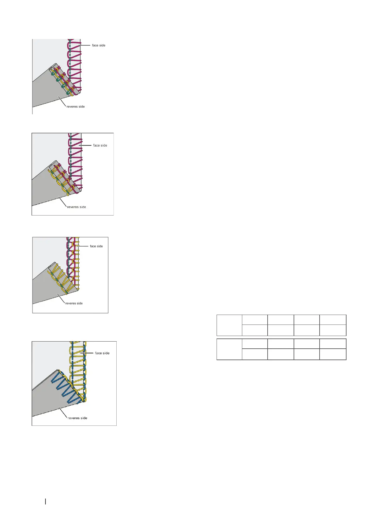 Wenn der Faden des unteren (gelben) Greifers auf der rechten Seite des Stoes sichtbar ist, erhöhen Sie die Spannung des gelben Fadens oder
