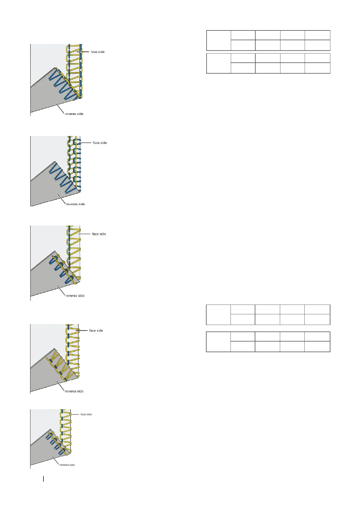 Si el hilo de la aguja está demasiado ojo, aumente la tensión del hilo de la aguja correspondiente o reduzca la tensión del hilo amarillo.