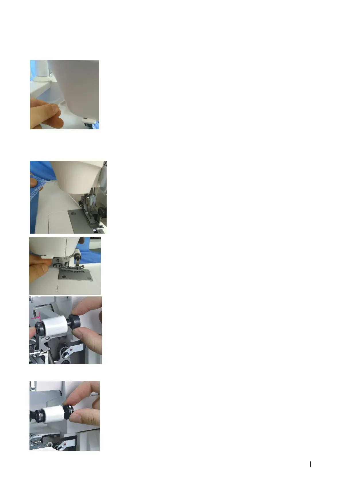 same thread and the same presser foot. If you wish to work on another garment, simply lift the front of the presser foot slightly with your thumb.