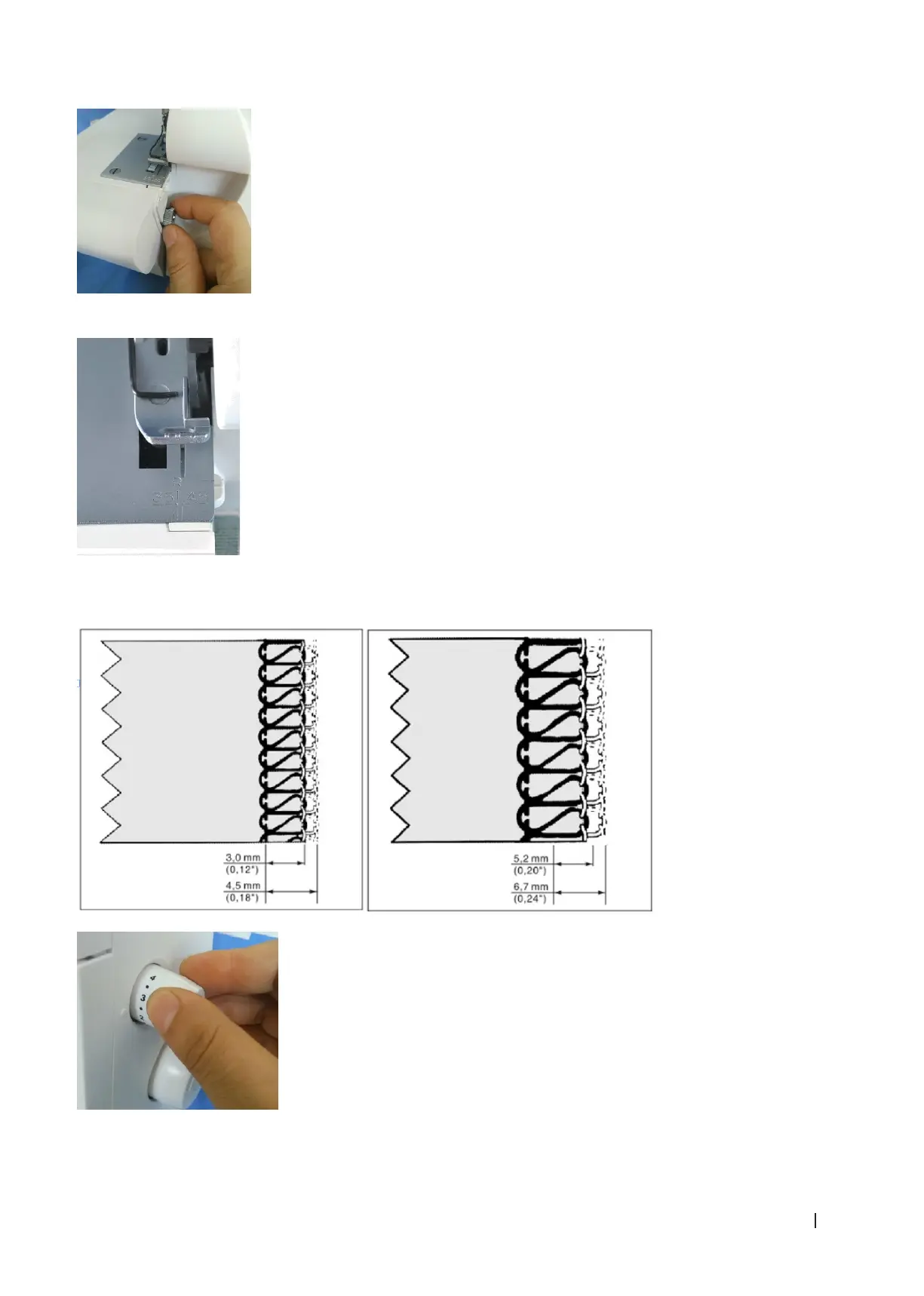 For most sewing jobs, the knob should be set to 3 mm. When working with narrow knitted fabrics,