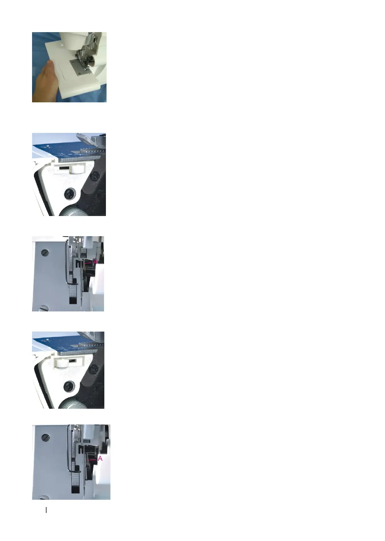 - Piece A will be pushed backwards. All rolled hems can be sewn with this setting.