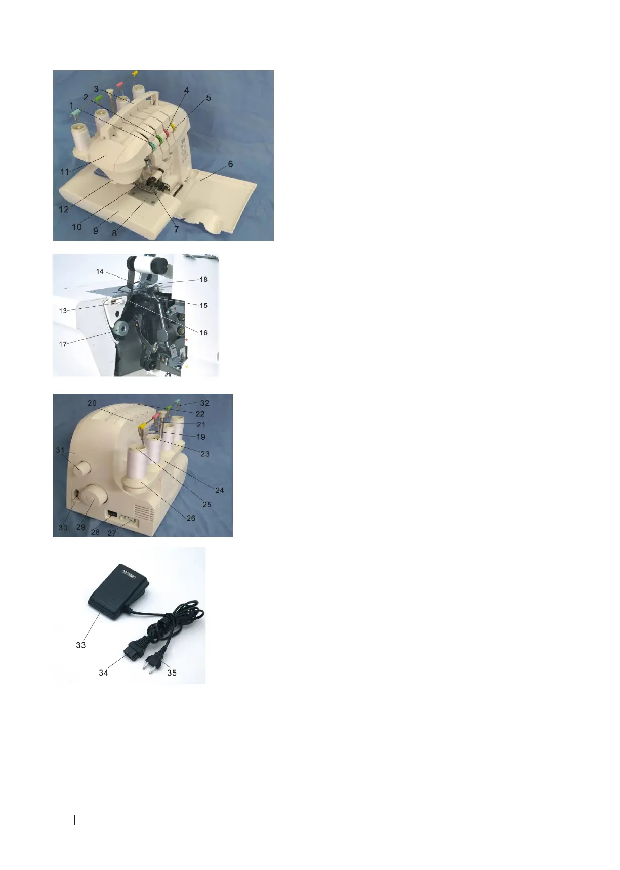 1. Molette de réglage de la tension du l de l’aiguille gauche