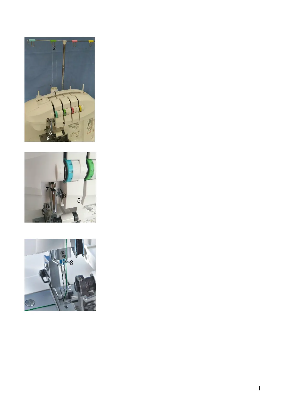 Pour enler l’aiguille droite (A), insérez le l en suivant les étapes 1 à 9 de l’image ci-dessous.