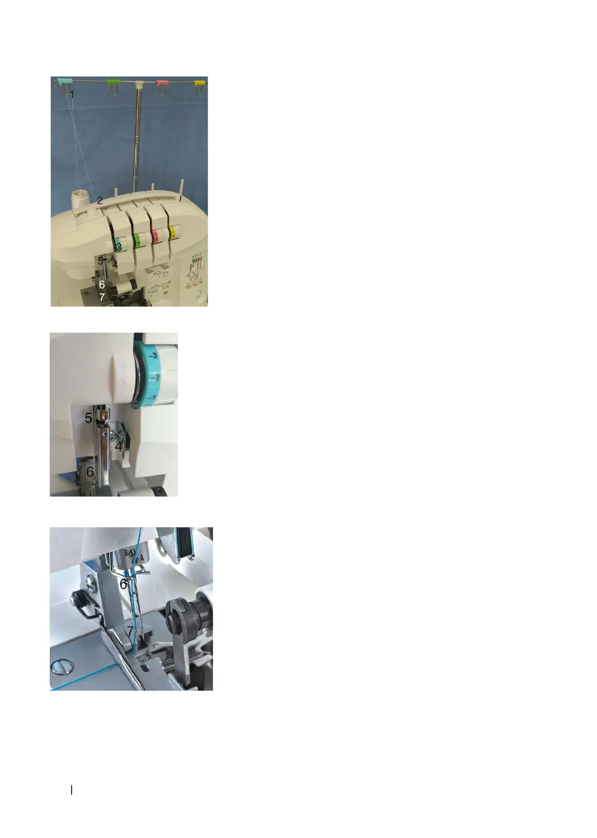 Faites passer environ 10 cm de l dans le chas de l’aiguille et placez-le à gauche sous le pied-de-biche.