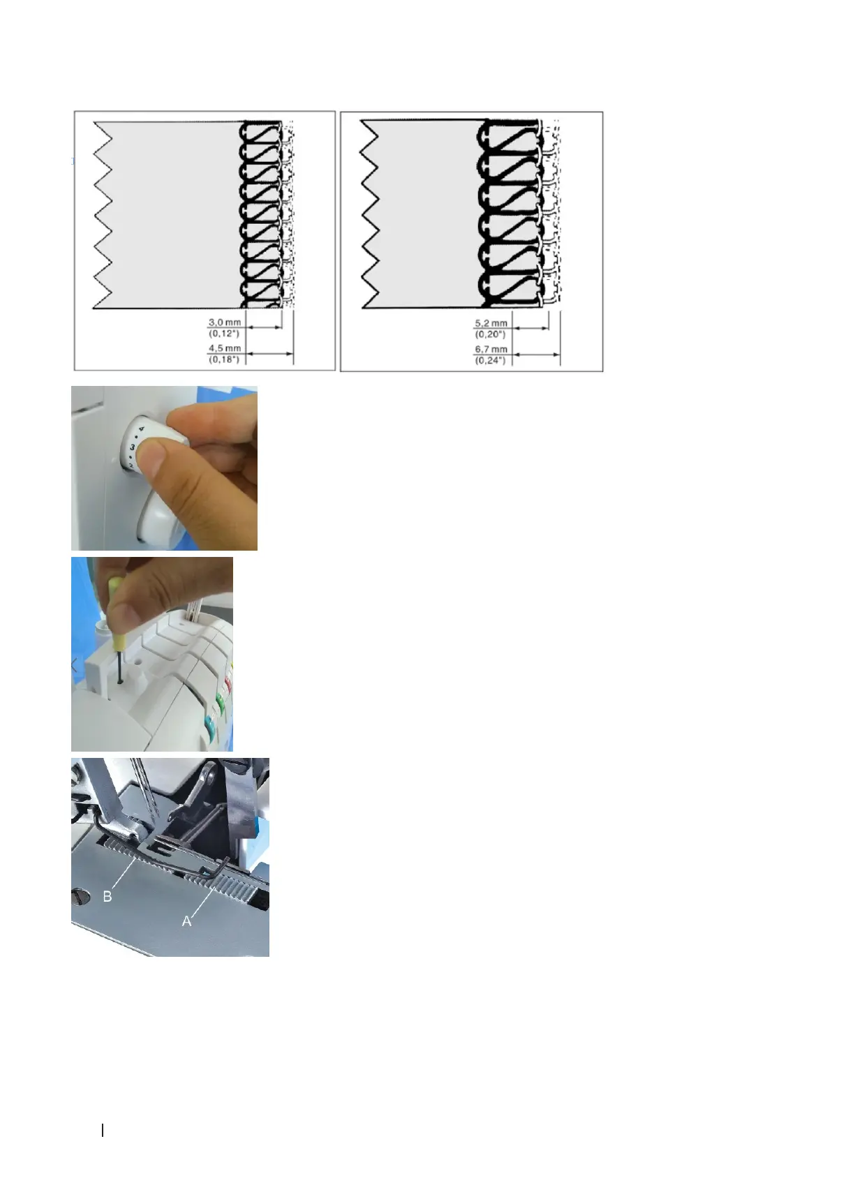 mouvement des gries d’entraînement avant (A) et donc la quantité de tissu à entraîner. Il peut être
