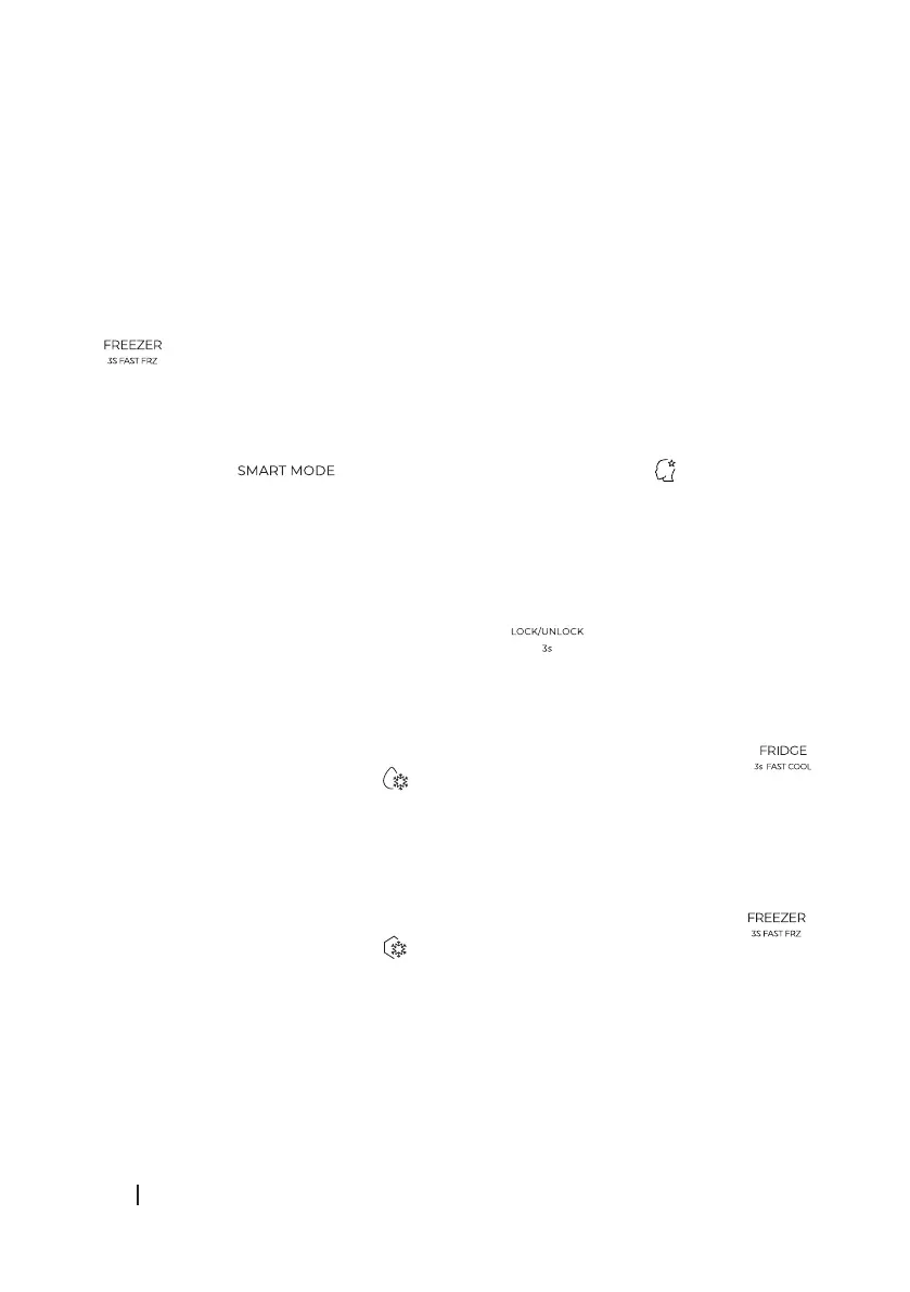 Ao premir o botão , o frigorífico entra no modo inteligente. é apresentado no