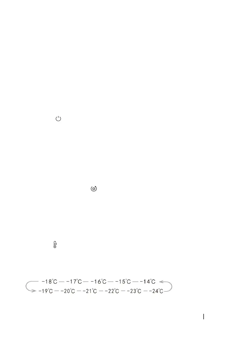 vypnete. Když je mraznička zapnutá, na displeji se zobrazí “- -”. Pokud nebylo stisknuto