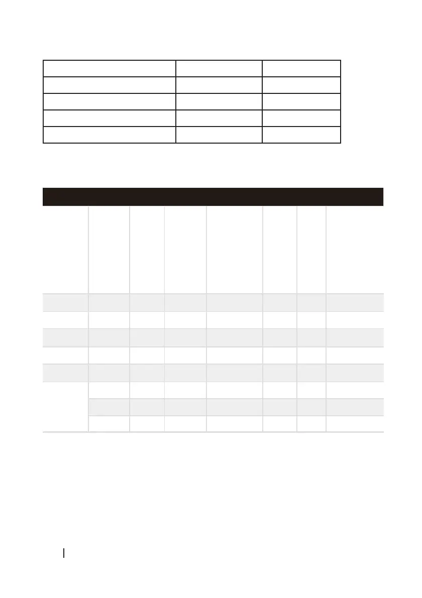 Os parâmetros nesta tabela são apenas para a referência do utilizador. Os parâmetros reais