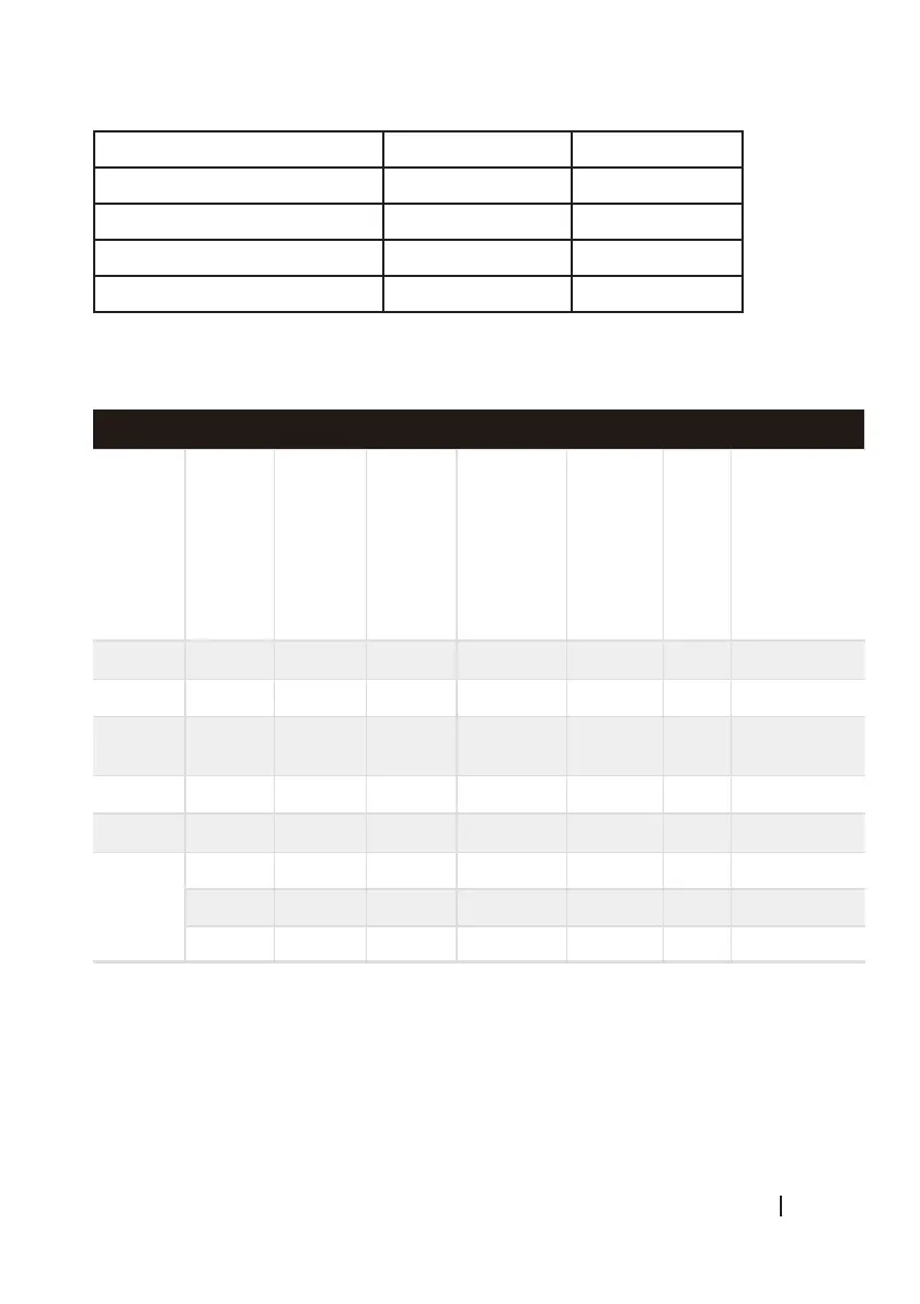 Los parámetros de esta tabla son sólo para referencia del usuario. Los parámetros reales