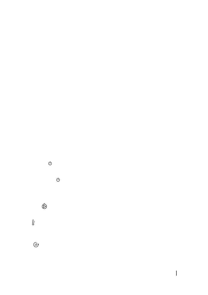 - Power icon : press and hold this icon to switch on the appliance. Then, select the desired