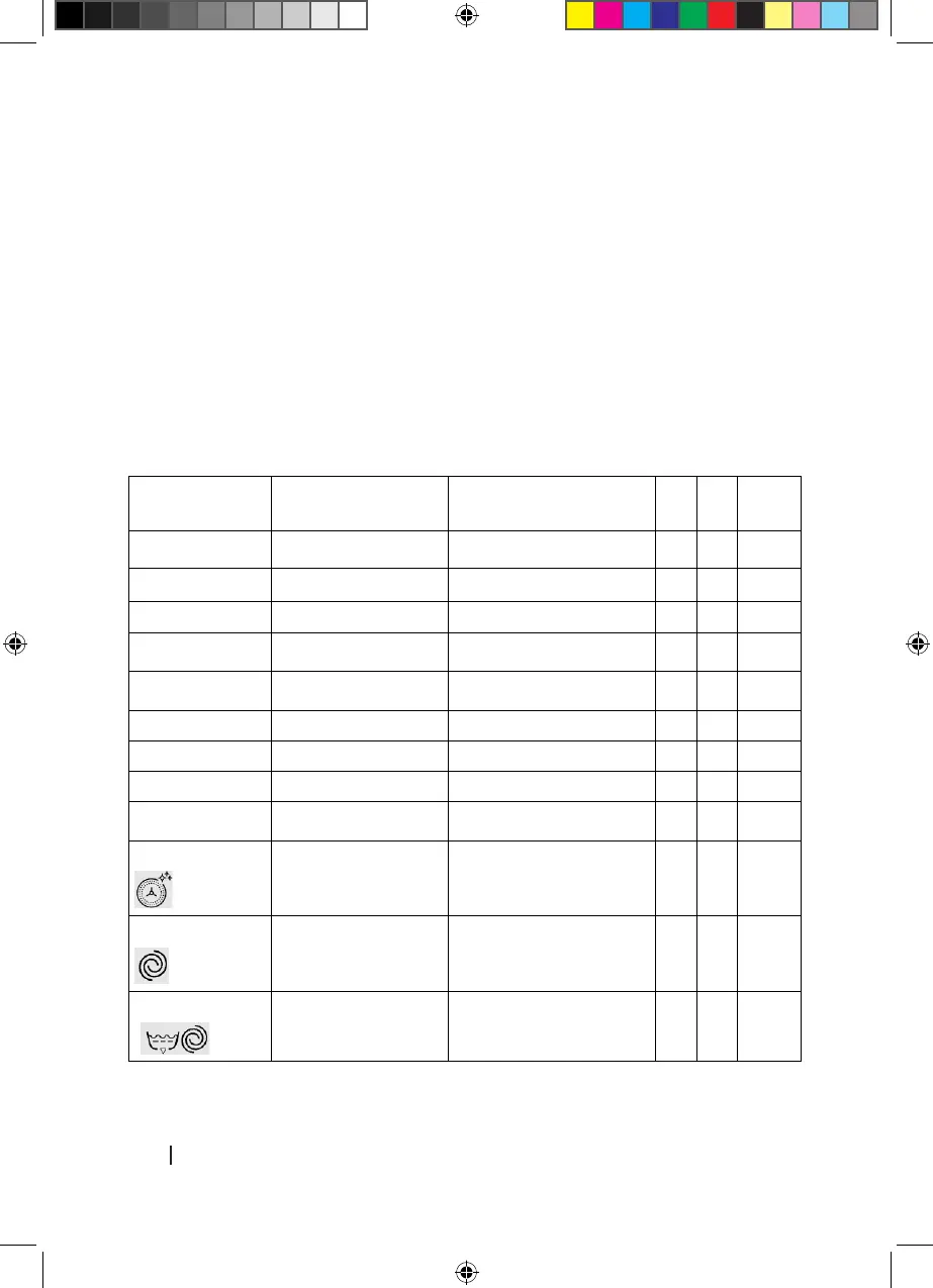 Programma Temperatura (°C) Velocità di rotazione (RPM) 8kg 9 kg 10 kg