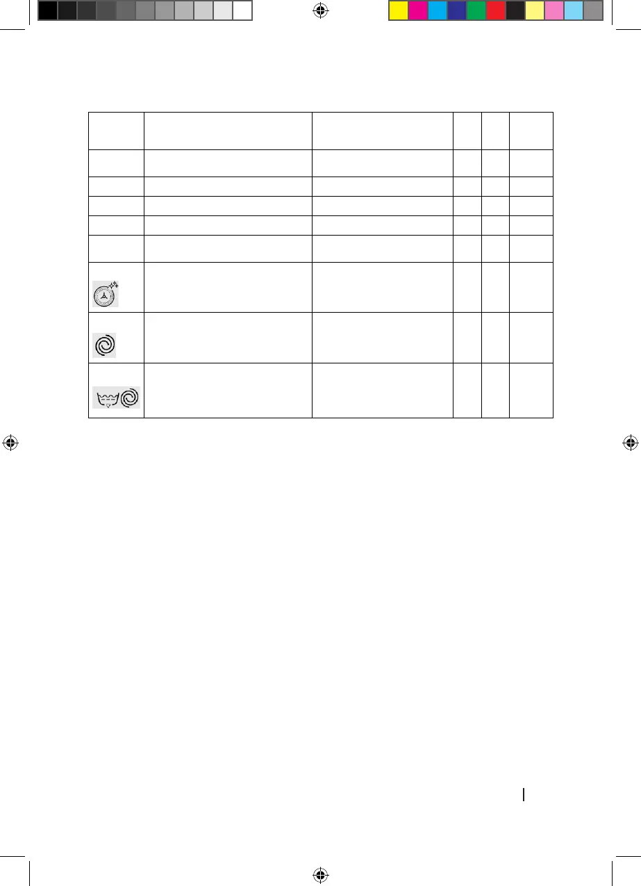 Programme Temperature (ºC) Spin speed (RPM) 8 Kg 9Kg 10 kg
