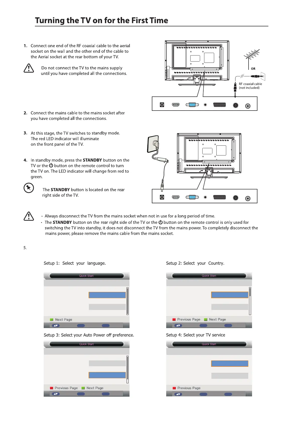 5. If this is the first time you are turning on the TV and there are no programs in the TV memory, the Quick Start menu
