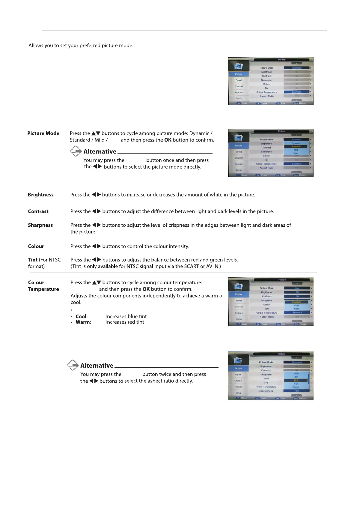 Press the ▲▼ buttons to cycle among aspect ratio: 4:3 / 16:9