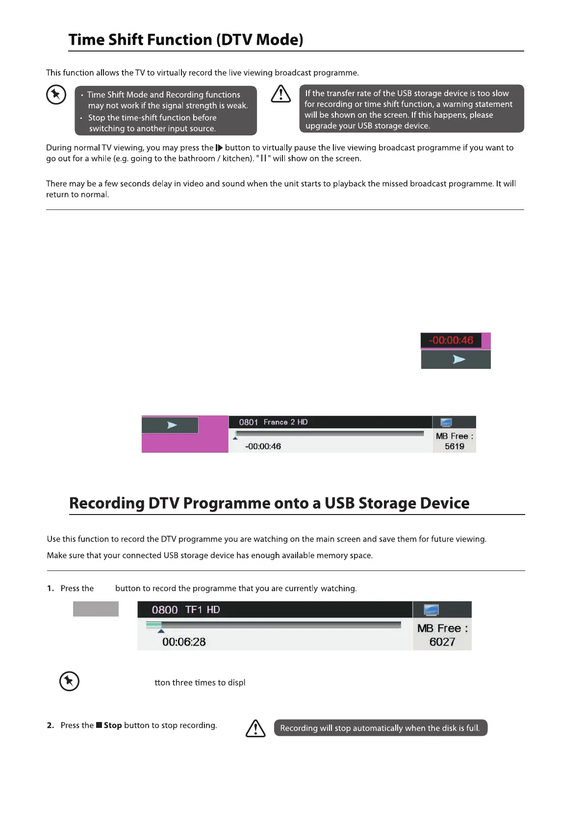 Information Time shift input info menu displays as a flag of Time shift. After Time shift start this menu displays