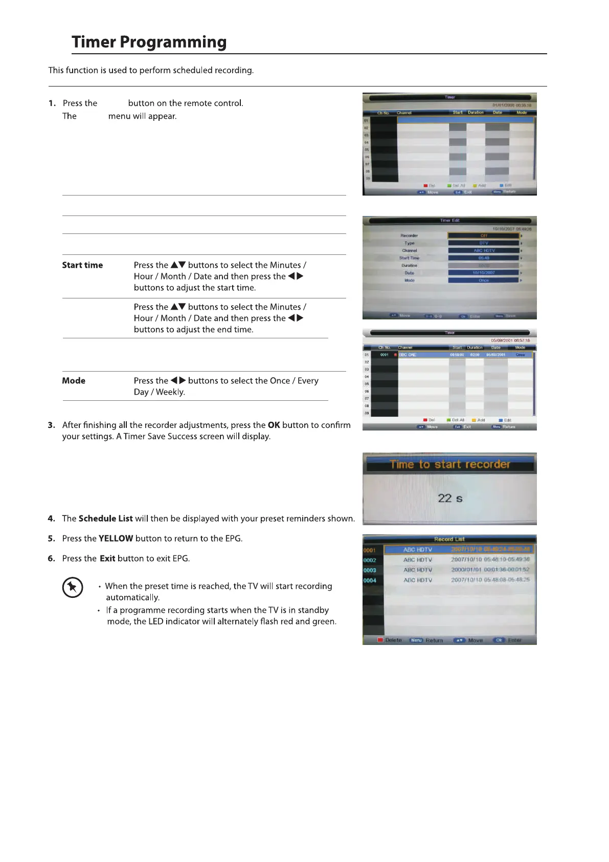 2. Press the ADD button enter the Time Edit menu for the channel.
