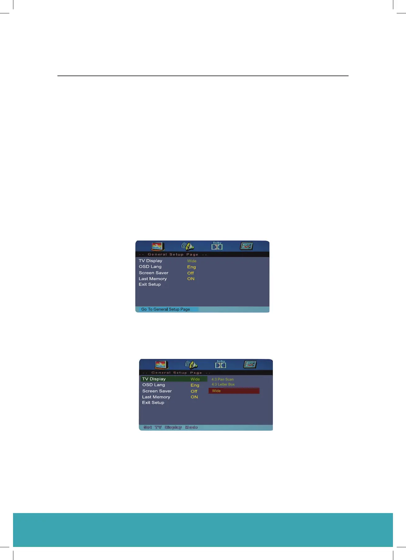 • Setup Mode provides the menu for the configuration of General Setup Page, Audio Setup