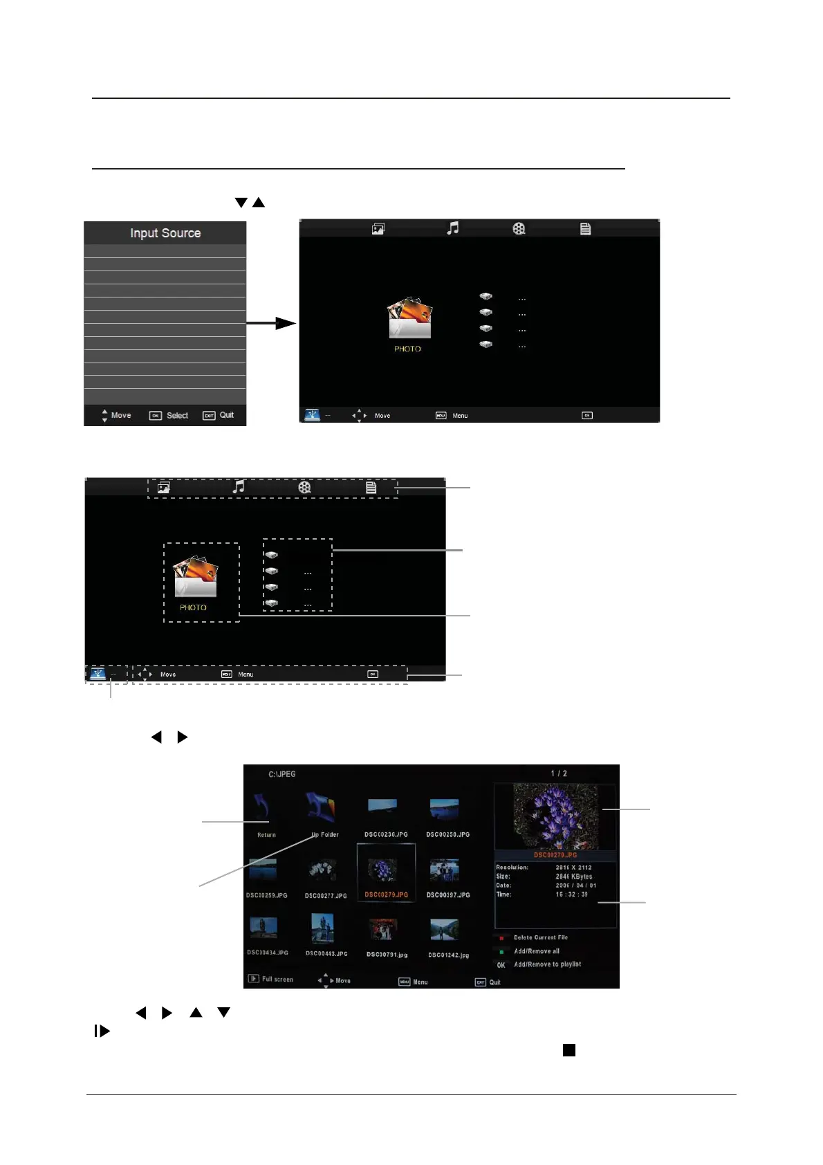 USB source with the buttons and press the OK button to enter the Multimedia menubelow.