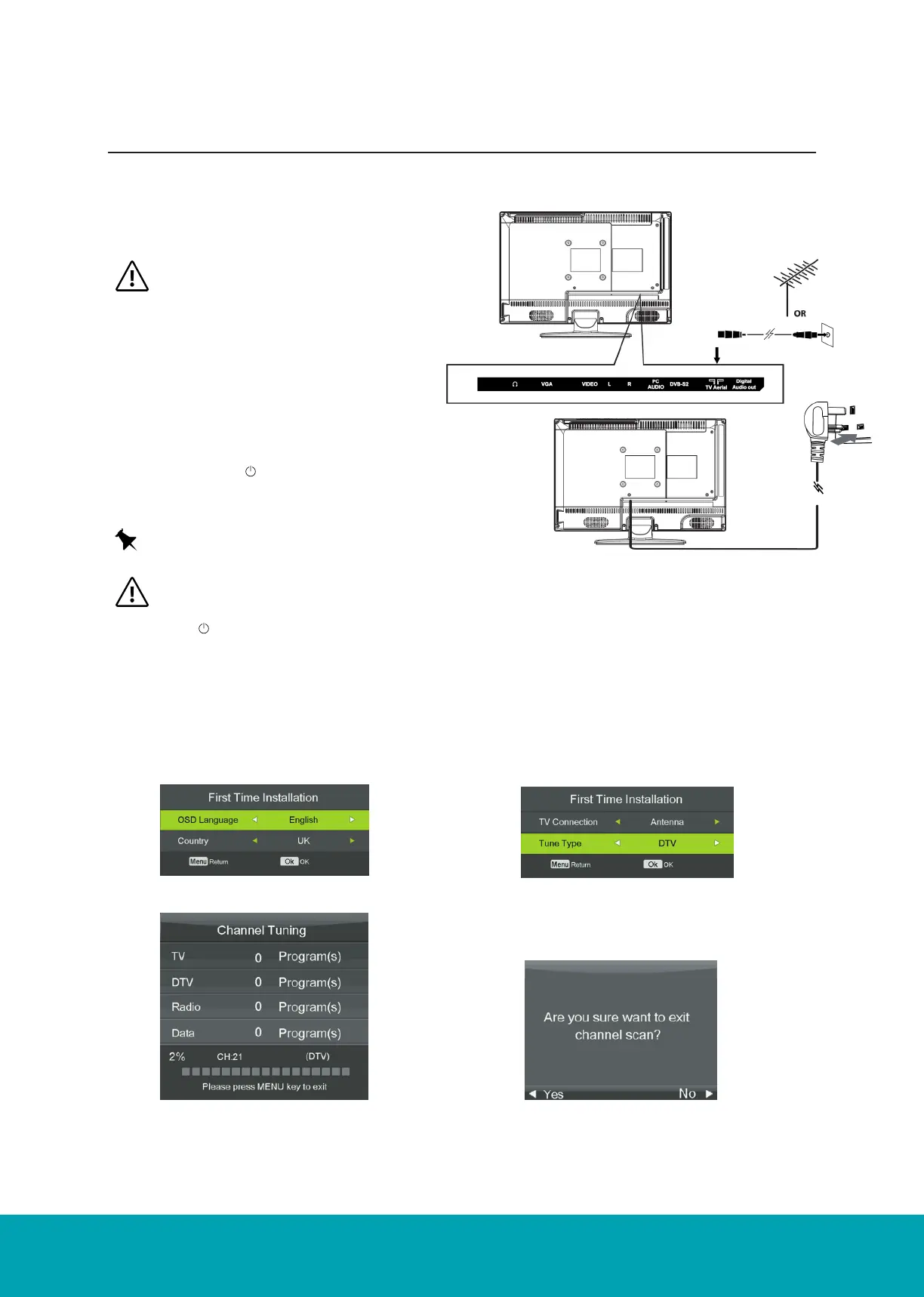 5. If this is the first time you are turning on the TV and there are no programs in the TV memory, the Quick