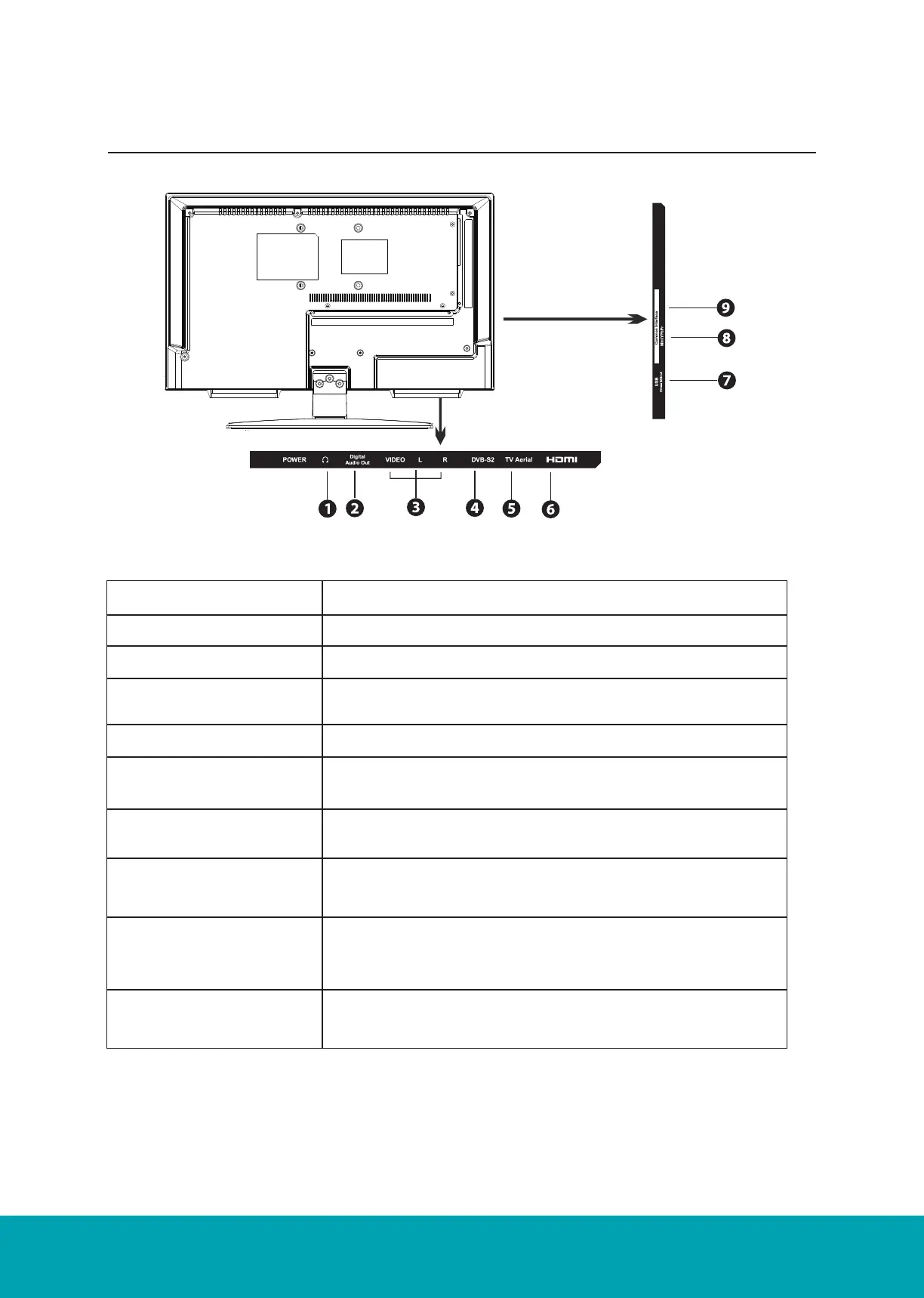 5. TV Aerial To connect to the aerial socket on the wall with the RF coaxial