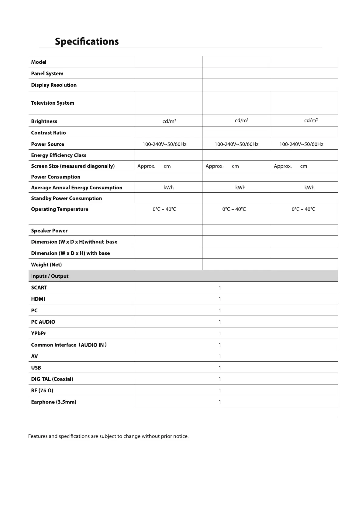 1366 (H) x 768(V) pixels 1920 (H) x 1080(V) pixels 1920 (H) x 1080(V) pixels