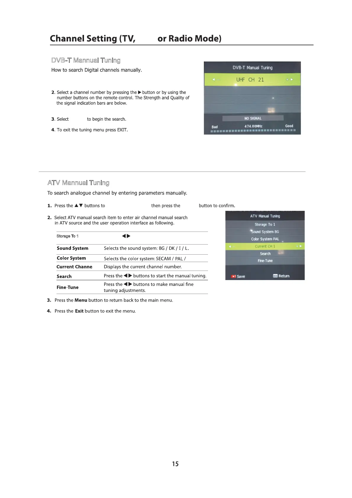 1.Select DVB-T Mannual Tuning,press the ÑÕ button to confirm.