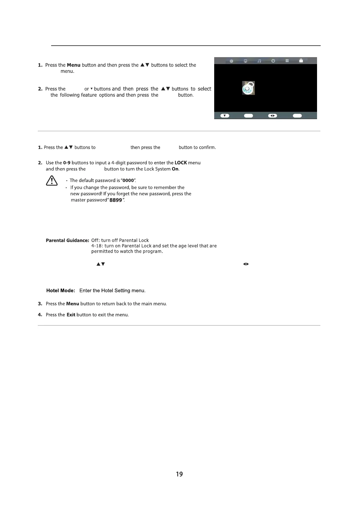 Menu/CH+/CH-/VOL+/VOL- of the device will be locked.