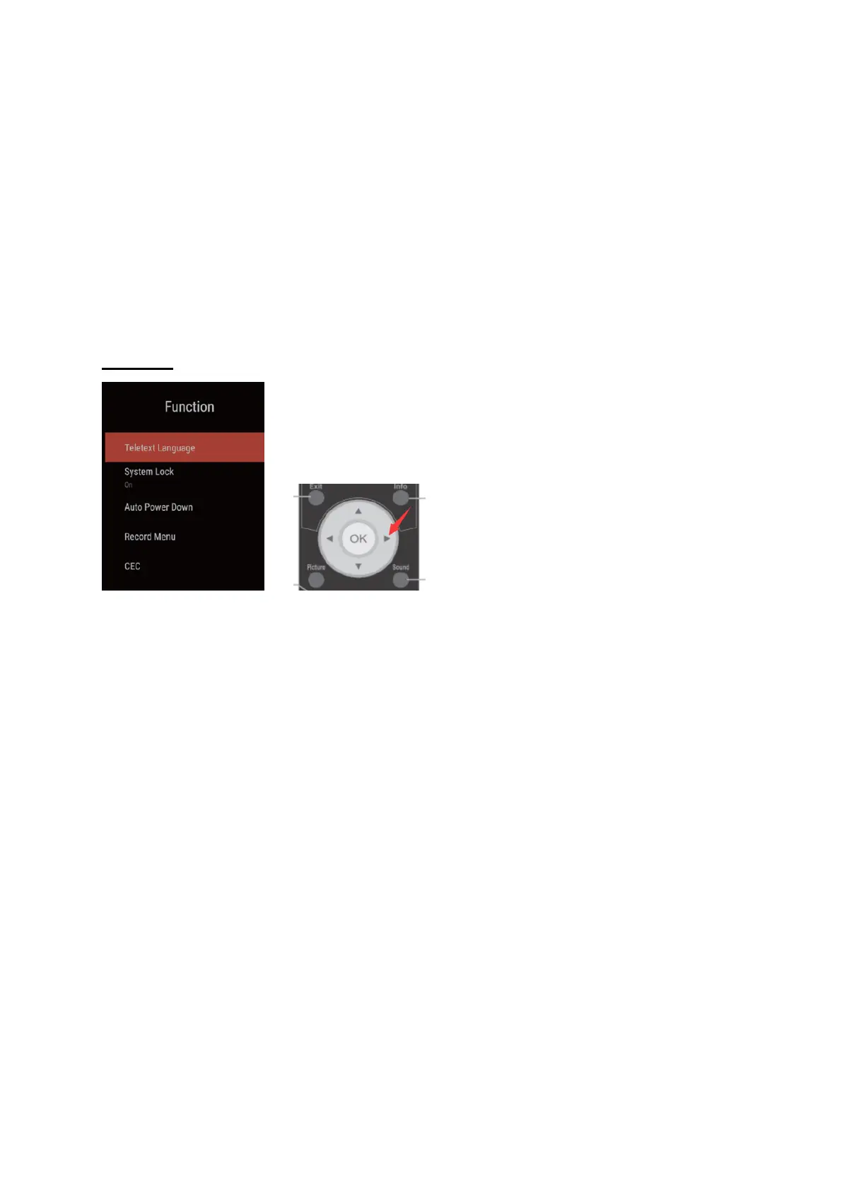 2. System Lock: Press the OK key on the remote control to turn the lock system on and off