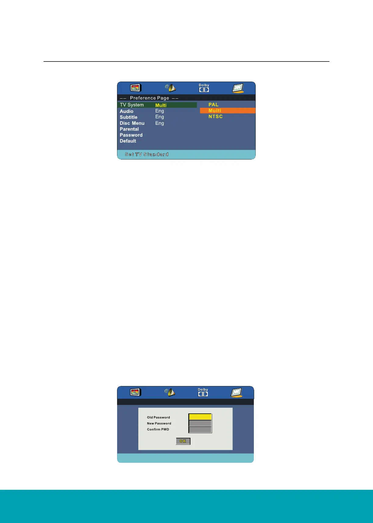 • NTSC This is selected when the player is connected to a NTSC System TV.