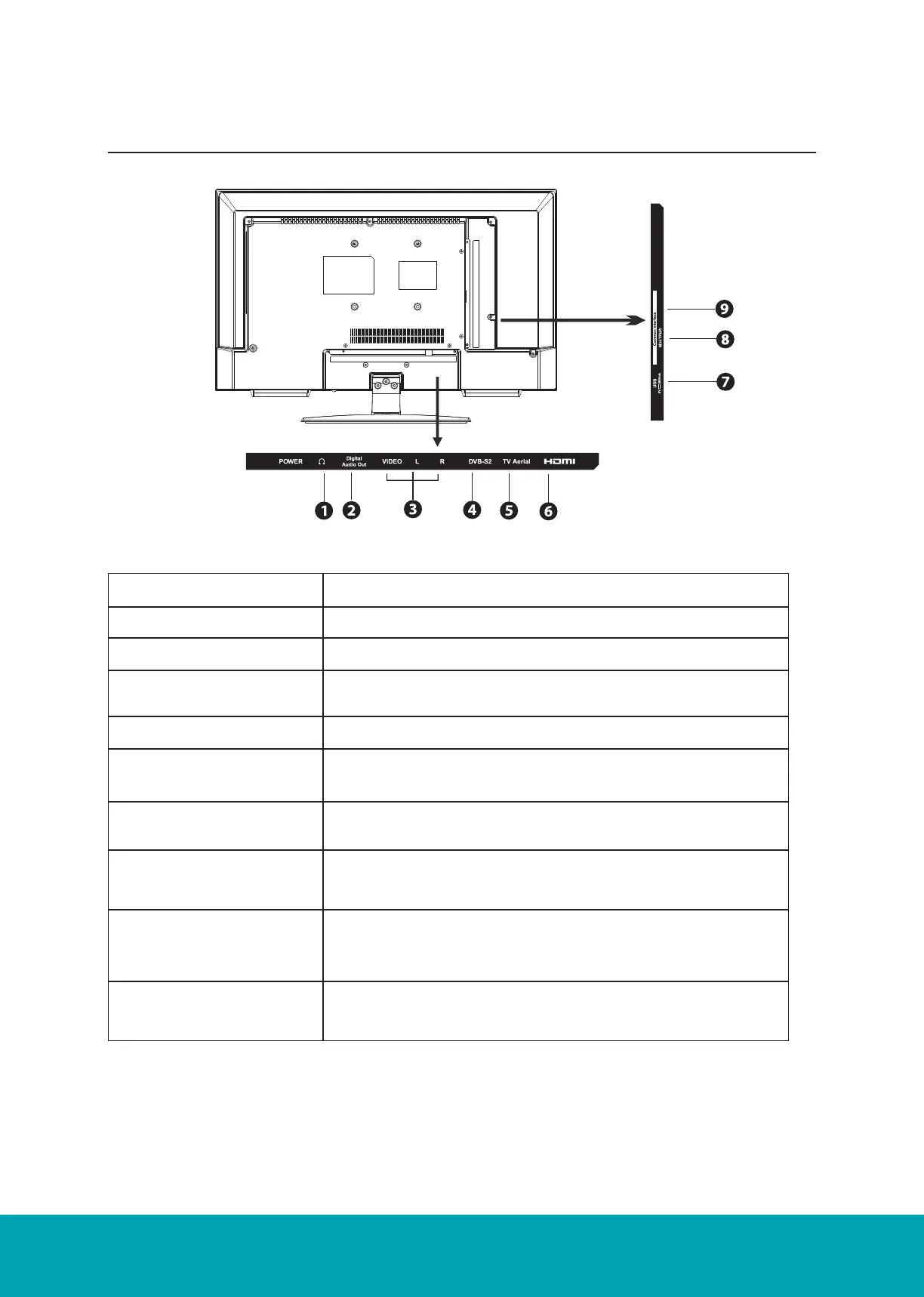 5. TV Aerial To connect to the aerial socket on the wall with the RF coaxial