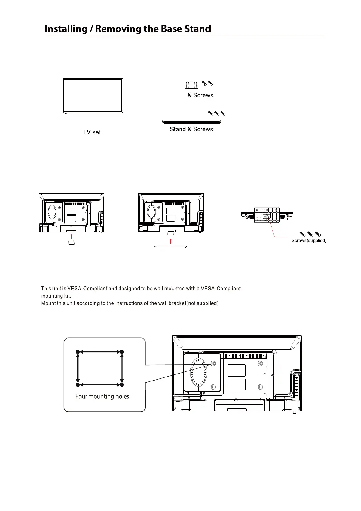 3.Attach the stand with the supplied screws.