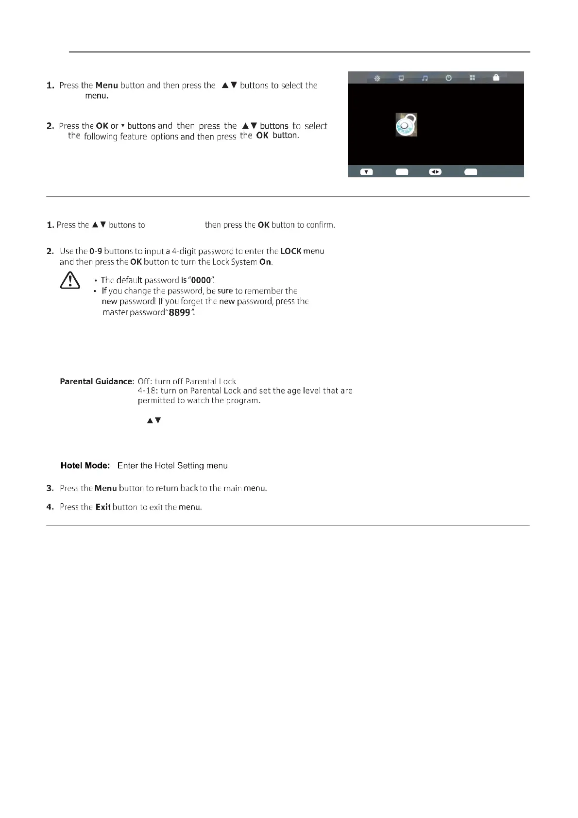 Menu/CH+/CH-/VOL+/VOL- of the device will be locked.